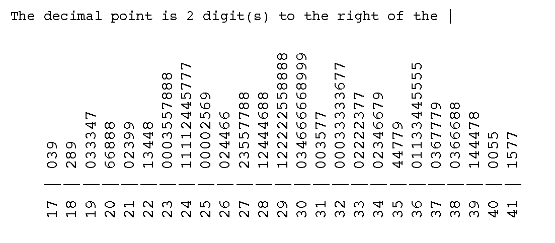 Although stem and leaf plots look a bit primitive, they remain a useful way to graphically summarize continuous data. They also display the distribution of continuous numeric data like birthweight, but include more information than a histogram. Like a histogram, the shape of the plot shows you the distribution across bins. In addition, the plot actually displays the raw data, so it is much easier for others to compare their results.