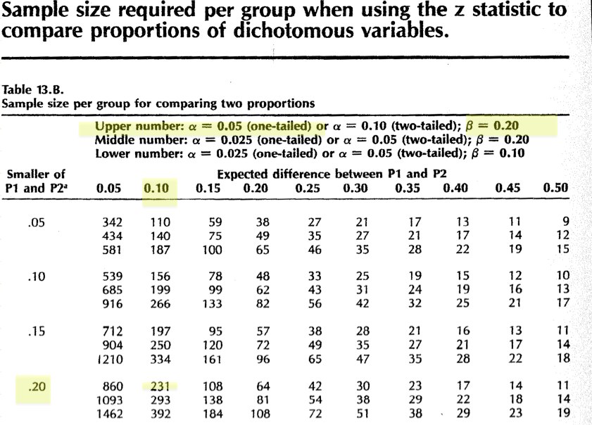- Two-tailed \(\alpha\) = 0.05, power = 90% ( \(\beta\) = 1-power = 0.1)